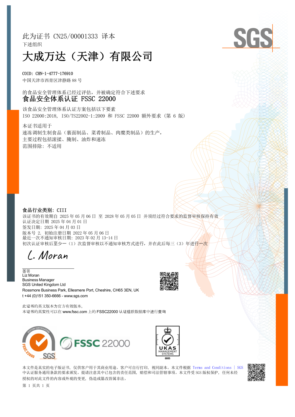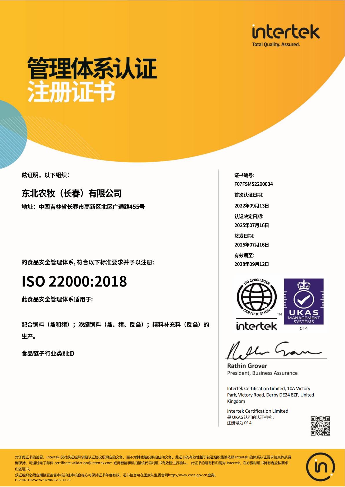 ISO 22000:2018食品安全管理体系认证 适用于配合饲料(禽和猪)、浓缩饲料(禽、猪、反刍)、精料补充饲料(反刍)的生产